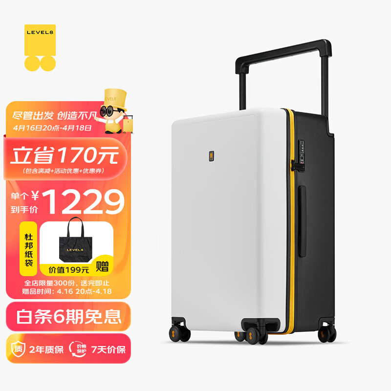 地平线8号(LEVEL8)行李箱男女密码拉杆箱 大旅行家大容量26英寸宽拉杆PC箱 黑白撞色价格:1399.00元!
