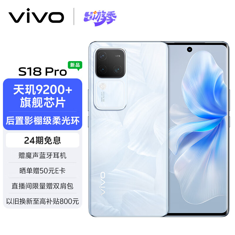 vivo S18 Pro 16GB+256GB 花似锦 天玑9200+旗舰芯片 后置影棚级柔光环 5000mAh超薄蓝海电池 拍照手机价格:3499.00元!