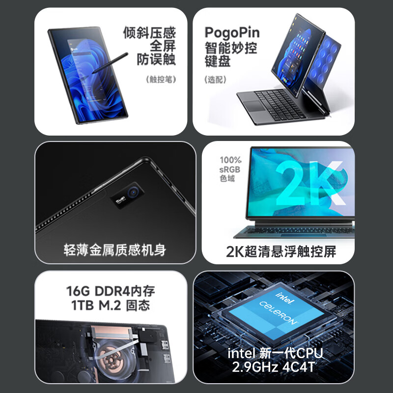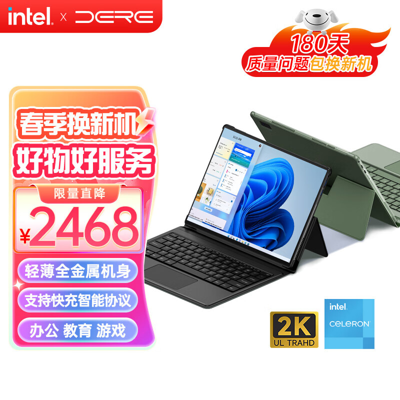 戴睿(dere)全新升级金属笔记本电脑平板二合一触控摸轻薄便携商务办公学生学习教育设计游戏 16G+512G 落岩灰价格:2468.00元!