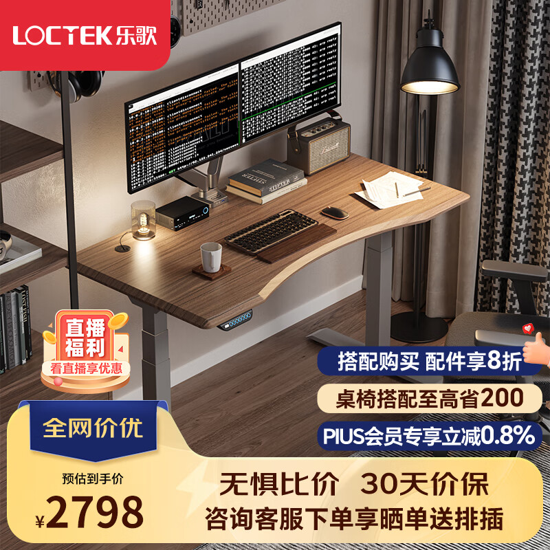 乐歌电动升降电脑桌学习桌写字桌凹型黑胡桃木色桌子E5-N/1.4m价格:3098.00元!
