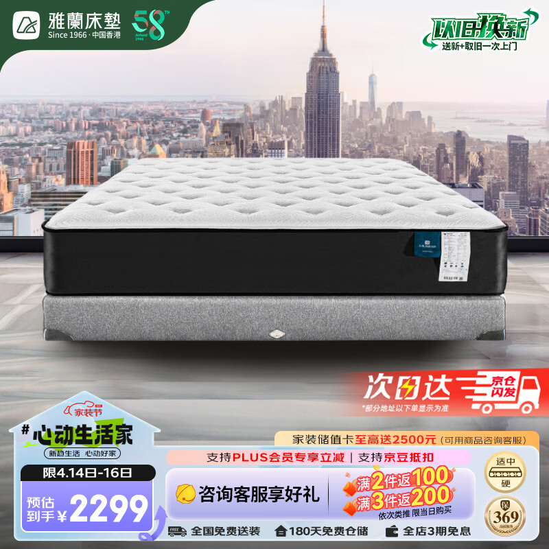 雅兰50周年纪念款 软硬适中独袋弹簧乳胶床垫 蘭朋友舒适2.0 1.8*2米价格:2699.00元!