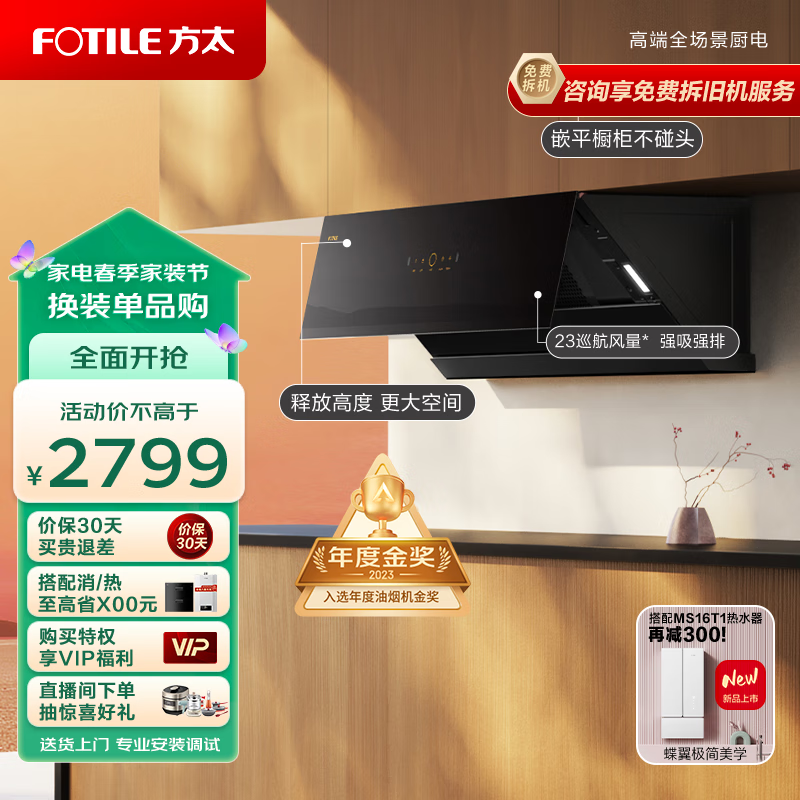方太家用侧吸抽油烟机 23m3/min大吸力 直流变频 智能巡航 小尺寸JCD10TA价格:2799.00元!