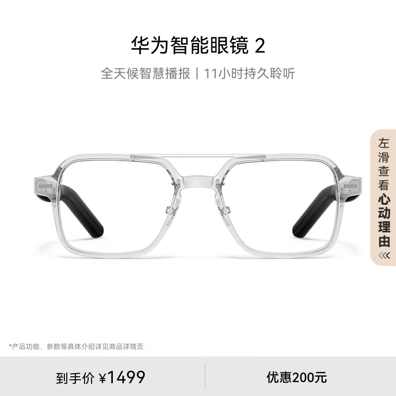 华为耳机智能眼镜 2 飞行员光学镜 音乐视频/无线双耳立体声/通话隐私保护/通话降噪/开放式耳机价格:1449.00元!