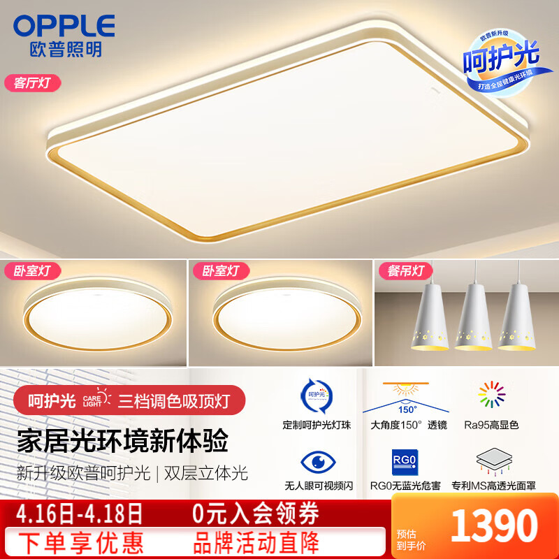 欧普照明(OPPLE) 吸顶灯客厅大灯可调光LED照明灯具灯饰套餐2呵护光价格:1390.00元!