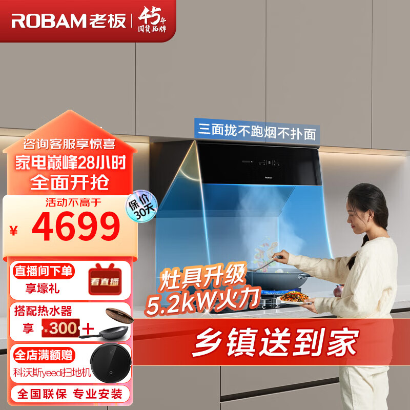 老板(Robam)油烟机28X6ST变频油烟机24风量抽油烟机【王一博同款】低噪音挥手感应智能语音控制抽油油烟机 【搭配57B0X灶具】5.2kW火力 天然气探索家系列价格:4699.00元!