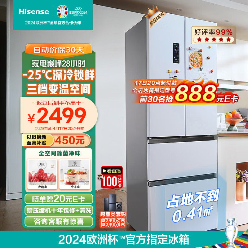 海信(Hisense)法式冰箱四开门无霜电冰箱一级能效超薄双变频BCD-330WNK1DP冷藏冷冻除菌净味 白色价格:2799.00元!
