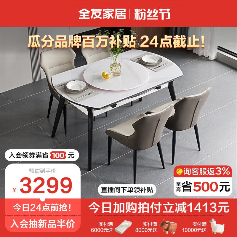 全友家居?轻奢钢化玻璃折叠餐桌椅组合可伸缩家用桌子饭桌家具DW1059价格:4712.86元!