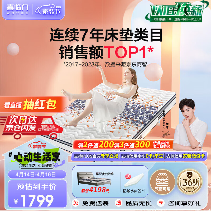 喜临门进口乳胶椰棕床垫 抗菌防螨独袋弹簧床垫 蝶梦2S 1.5x1.9米价格:1999.00元!