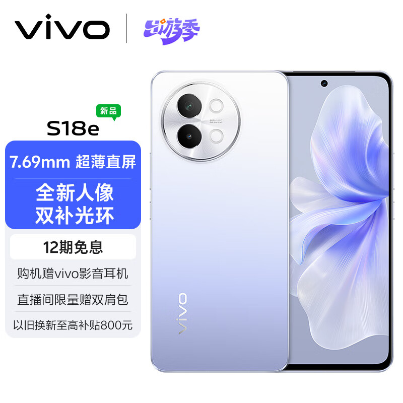 vivo S18e 12GB+512GB 霞光紫 7.69mm超薄直屏 80W 4800mAh超长续航 全新人像双补光环 5G 拍照 手机价格:2299.00元!