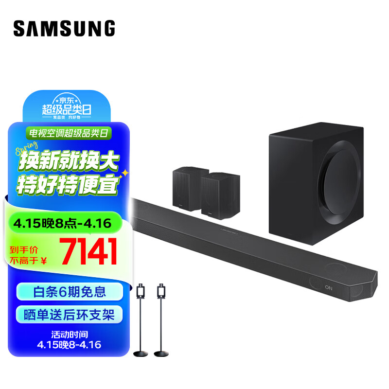 三星(SAMSUNG)Q990C 11.1.4杜比全景声 回音壁 soundbar 家庭影院 无线环绕低音炮 蓝牙 电视音响 投影价格:7139.00元!
