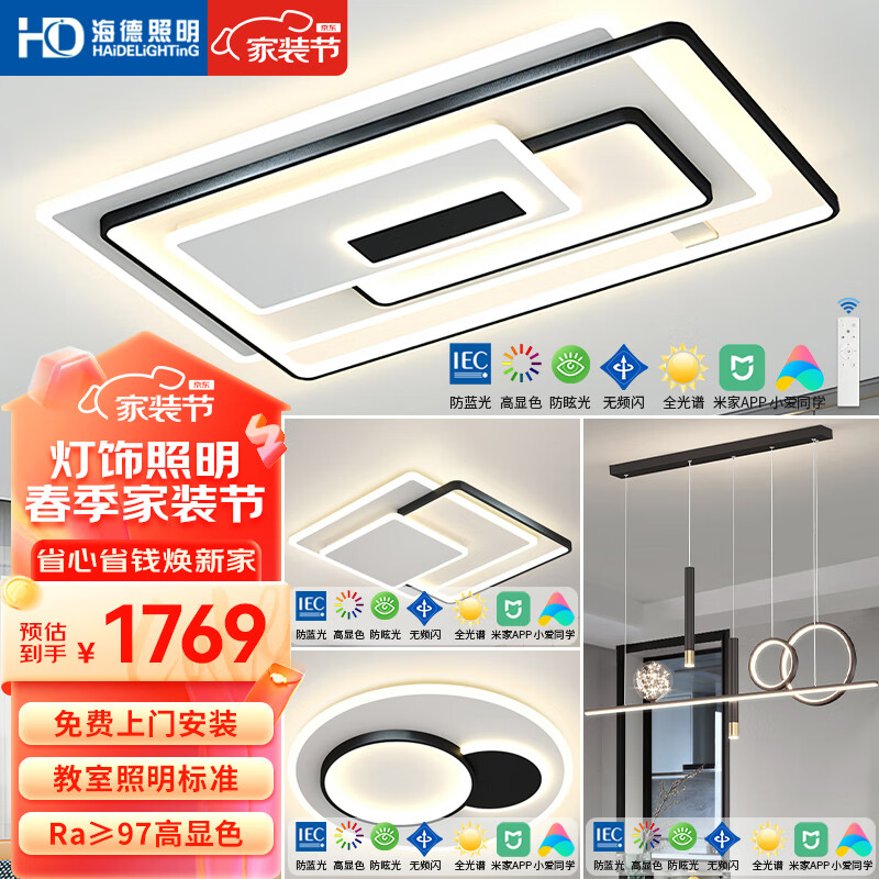HD全光谱米家智能吸顶灯 led大客厅卧室餐厅防蓝光防频闪灯具套餐C价格:2199.00元!