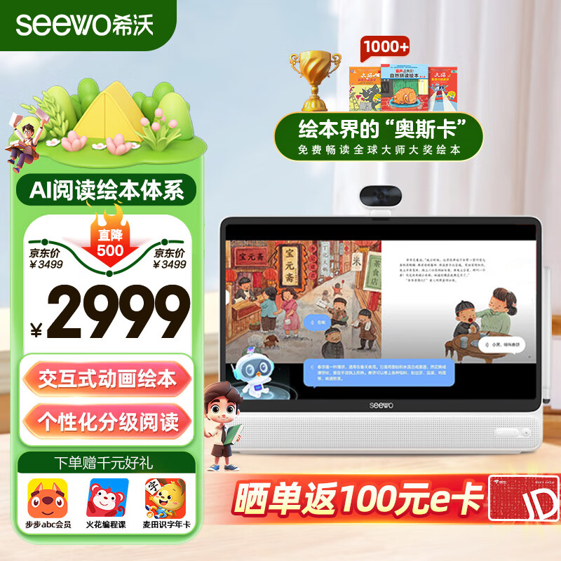 希沃学习机W2 绘阅版珍珠白6G+256G 15.6英寸防眩光 类纸护眼平板电脑 家教机 AI学生平板 点读机价格:3199.00元!
