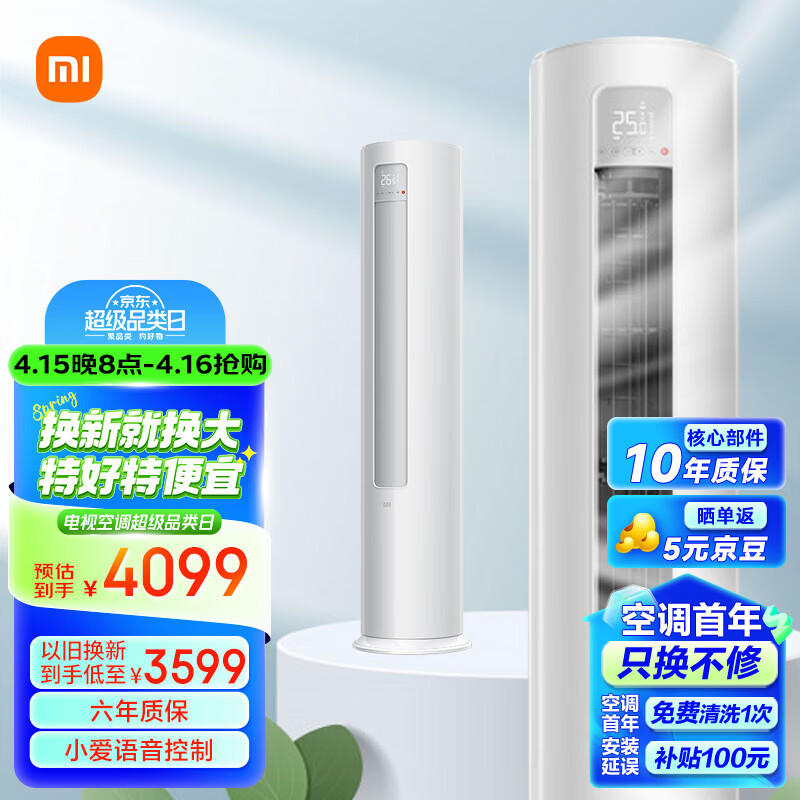 小米小米3匹 新能效 变频冷暖 智能自清洁 客厅圆柱空调立式柜机 KFR-72LW/N1A3 以旧换新价格:4099.00元!