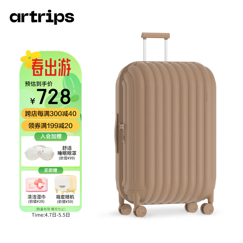 artrips行李箱男女拉杆箱28英寸大容量旅行箱面包款万向轮皮箱子 可可棕价格:878.00元!