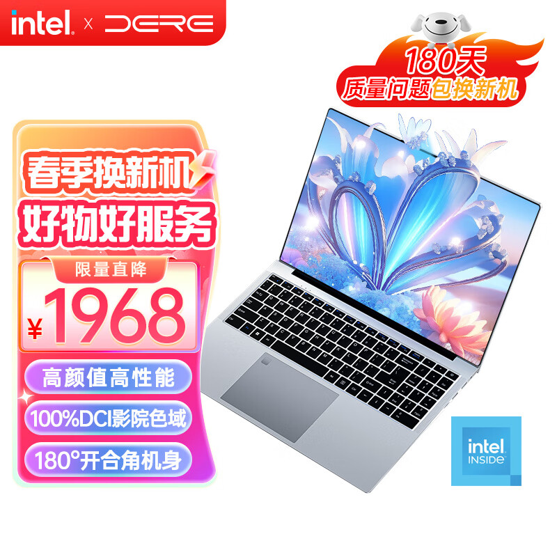 戴睿(dere)商务旗舰16英寸笔记本电脑商务轻薄学生网课设计学习办公游戏绘图手提 英特尔16G + 512G 琥珀银价格:1968.00元!