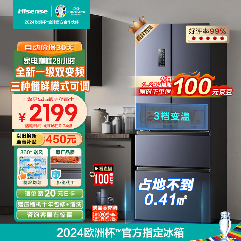 海信(Hisense)四开门冰箱法式328升无霜冰箱一级能效双变频超薄家用电冰箱BCD-328WNK1DPT除菌净味小占地价格:2399.00元!