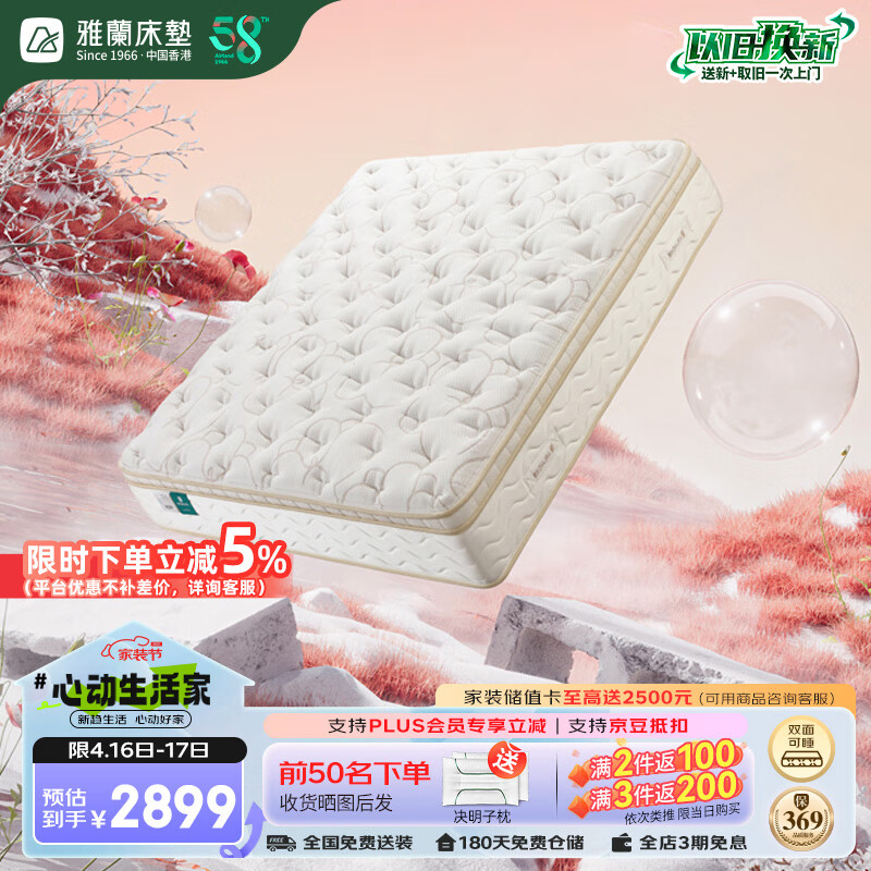 雅兰2CM乳胶床垫天丝?面料软硬双面独袋弹簧床垫 大小姐 1.5米*1.9米价格:4899.00元!