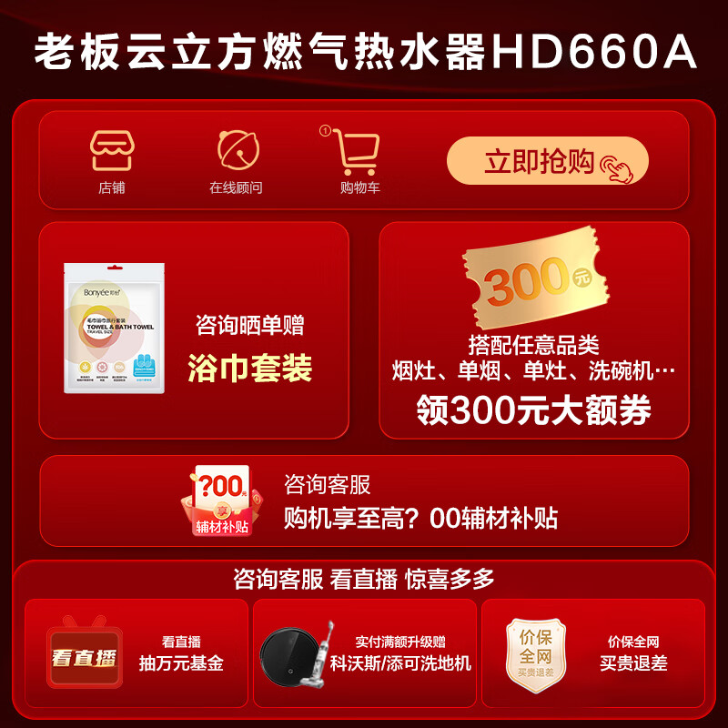 老板(Robam)16+1升燃气热水器天然气 澎湃大水量 下置变频风机 智能恒温抗风防冻强鼓式JSQ31-HD660A-16价格:2899.00元!