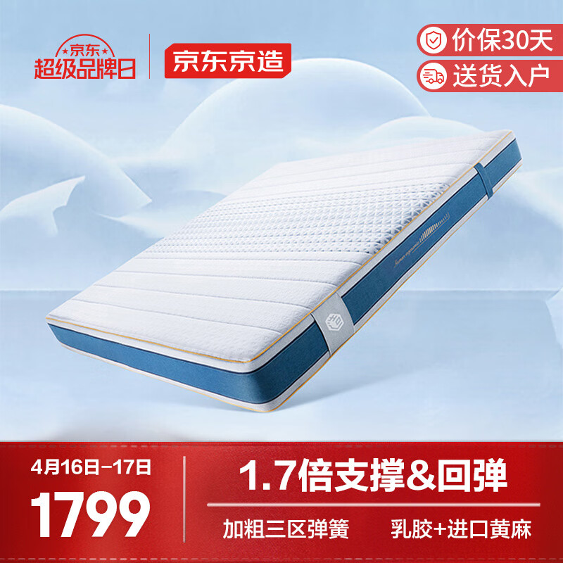 京东京造弹簧床垫 乳胶+黄麻|3D空气纤维|撑腰舒脊 席梦思床垫1.8×2米MH01价格:1999.00元!