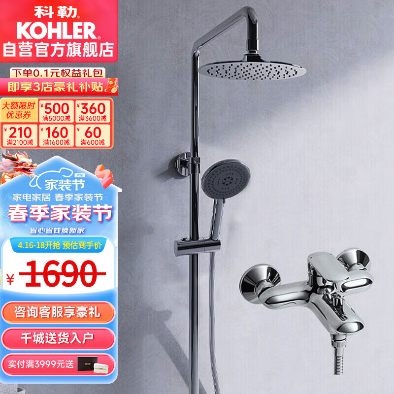 科勒(KOHLER)圆形超薄顶喷花洒套装大顶喷沐浴升降多功能洗澡喷头K-28582价格:2374.00元!