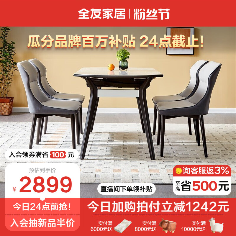 全友家居 现代轻奢岩板餐桌椅餐厅家具可方可圆伸缩折叠餐桌DW1059价格:4141.43元!