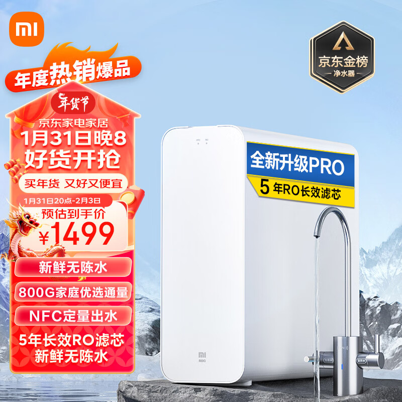 米家小米净水器家用净水机H800G Pro厨下式直饮机 六级过滤 5年RO反渗透 双出水龙头 无陈水 智能互联价格:1499.00元!