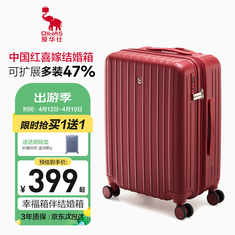爱华仕行李箱男拉杆箱女大容量陪嫁旅行箱24英寸密码箱可扩展箱中国红价格:489.00元!