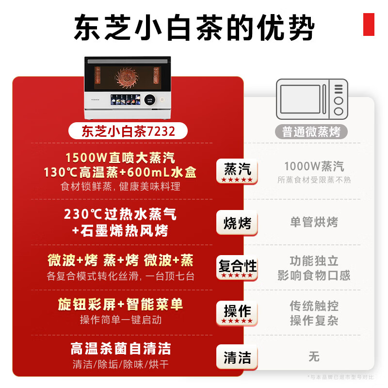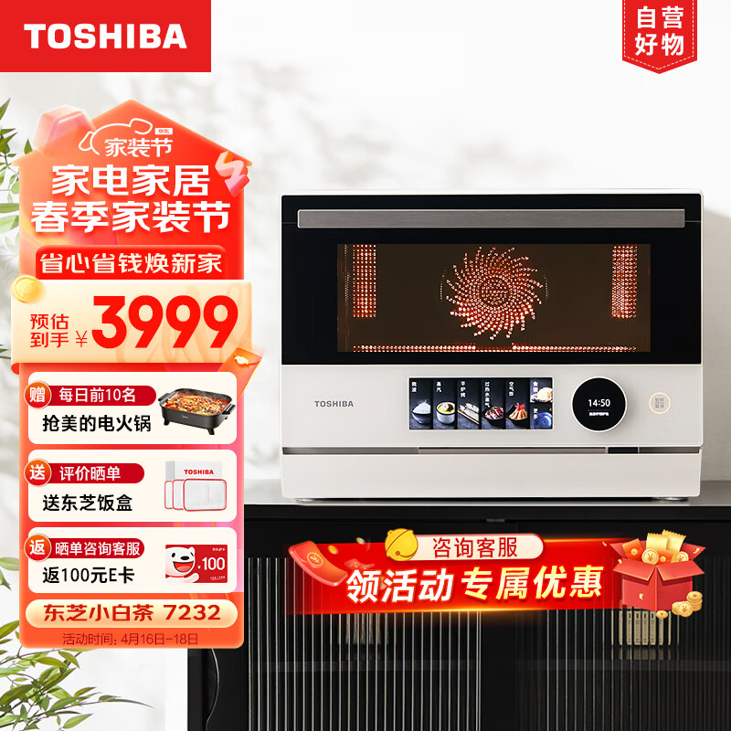 东芝(TOSHIBA)微蒸烤炸一体机 东芝小白茶7232 家用水波炉变频微波炉风炉烤箱空气炸 ER-YT7232CNW 大蒸汽价格:3999.00元!