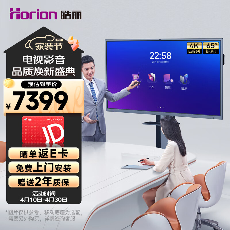 皓丽智能会议平板一体机65英寸触摸触屏会议电视4K智慧屏投影一体机商业显示会议室大屏培训E65标配价格:8849.00元!