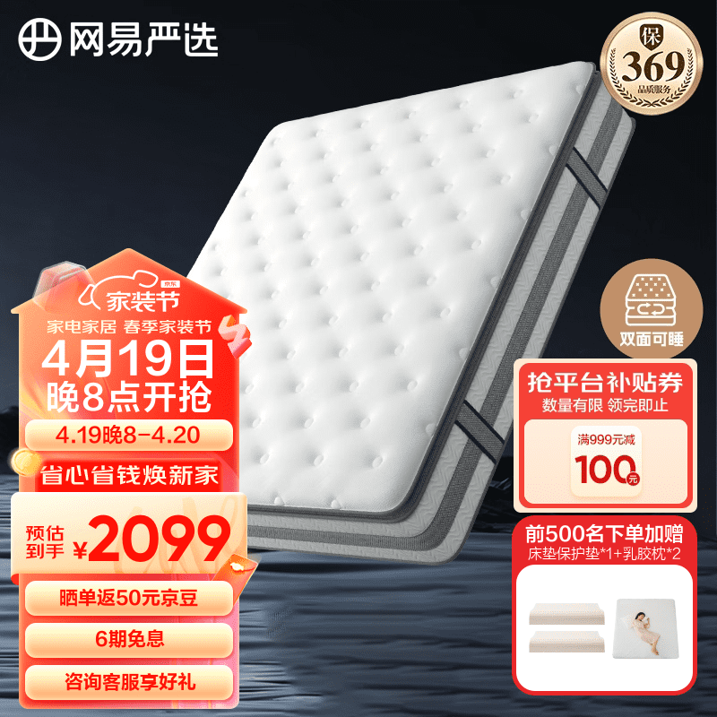 网易严选AB面弹簧床垫1.8米*2米 进口乳胶床垫旗舰款 抑菌防螨 独袋弹簧价格:2499.00元!