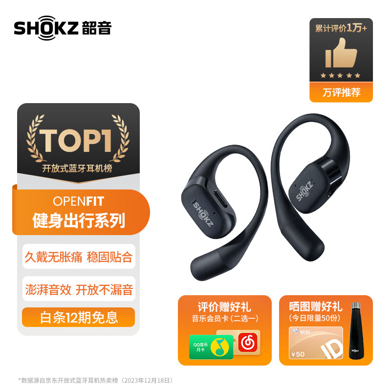 韶音(SHOKZ)舒适圈OpenFit开放式蓝牙耳机不入耳运动跑步长续航通话降噪T910 【60%选择】静夜黑价格:1298.00元!