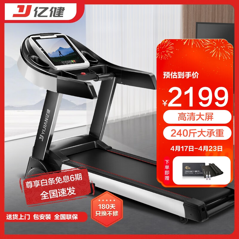 亿健(YIJIAN) 跑步机家用JD618可折叠智能10.1吋高清大屏健身器材价格:2299.00元!