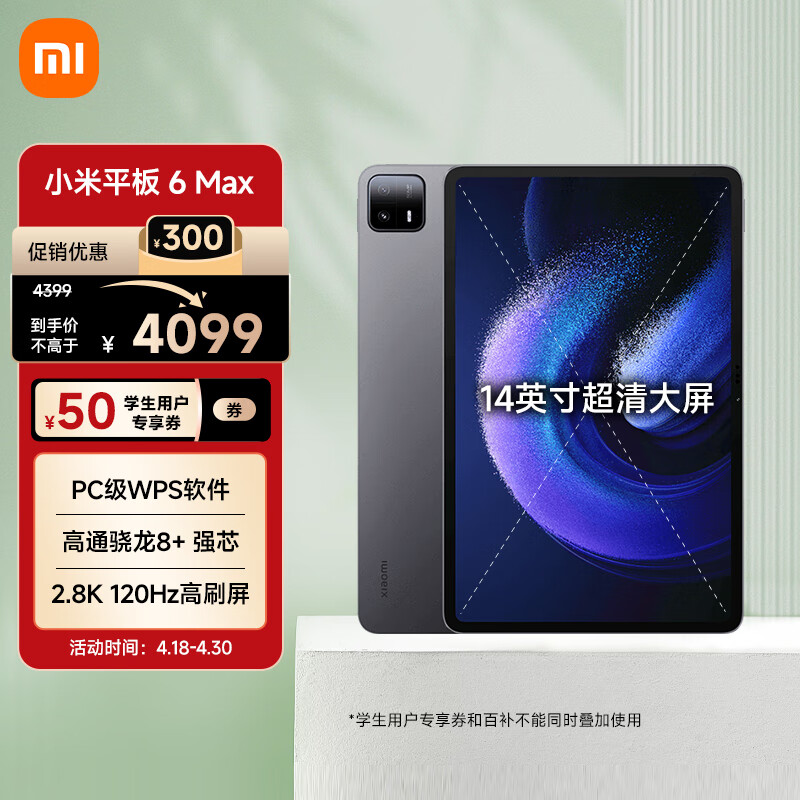 小米平板6 MAX14英寸xiaomiPad高通骁龙8+ PC级WPS 2.8K 120Hz高刷 12+512GB大屏办公平板电脑银色价格:4099.00元!