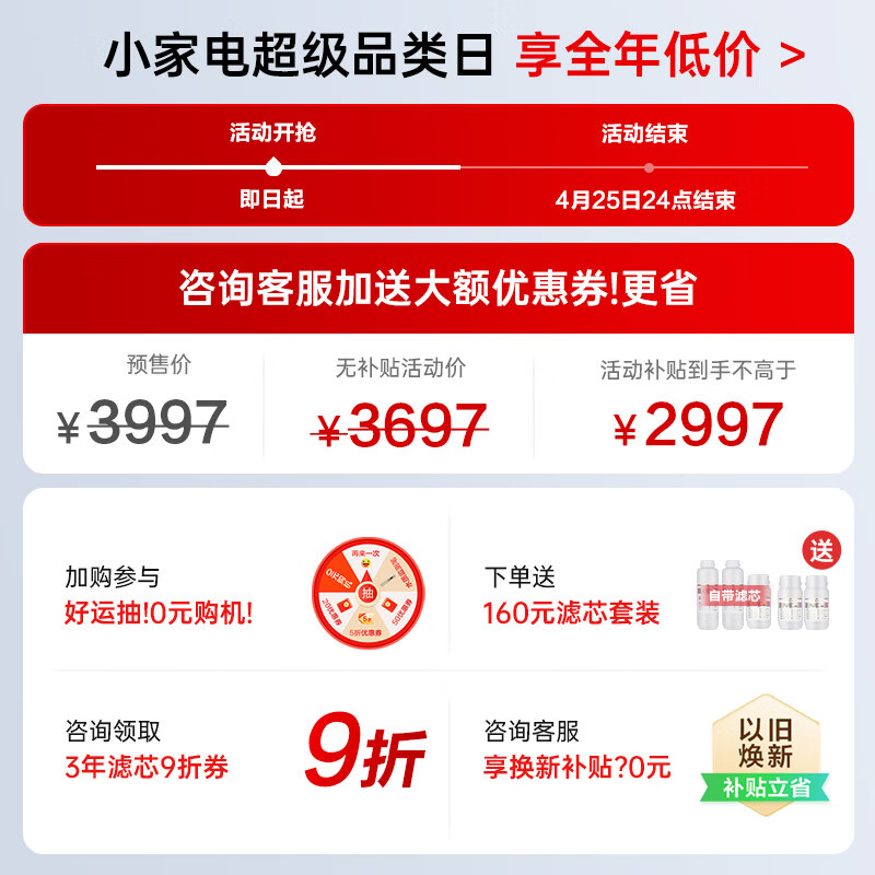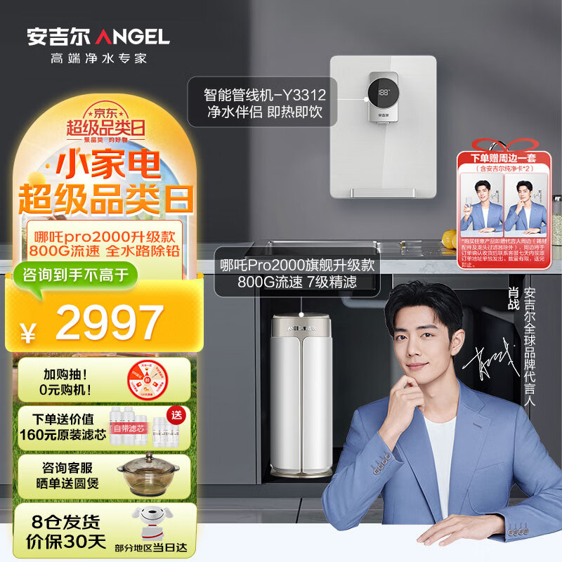 安吉尔净水器家用直饮 哪吒Pro2000 800G净水体验2.07L/min RO膜直饮水机双出水智能联网IOT净水机纯水机 【800G流速净水器+3秒速热管线机】2件套装价格:2997.00元!