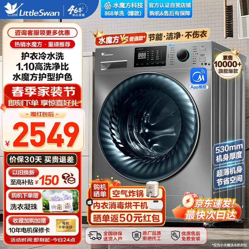 小天鹅(LittleSwan)水魔方滚筒洗衣机10公斤全自动家用变频 防缠绕 冷水洗护色护形TG100V868WMADY价格:2549.00元!