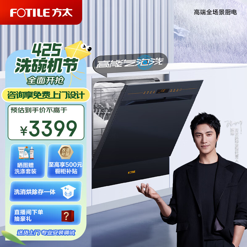 方太嵌入式洗碗机家用 高能气泡洗 10套大容量 智能变频 双风机热风烘干 高温除菌 4+2洗涤程序 NJ03价格:3399.00元!