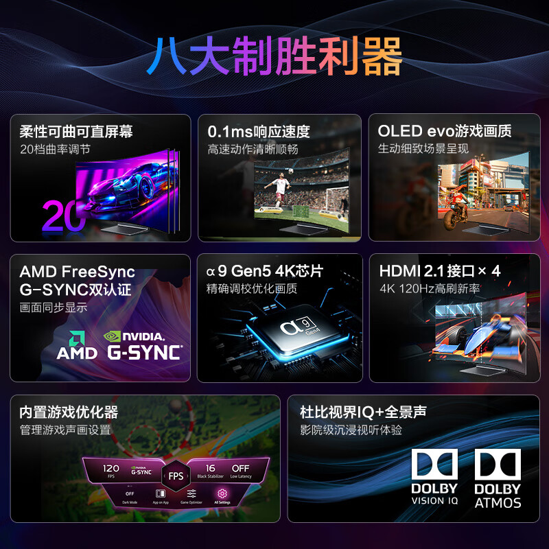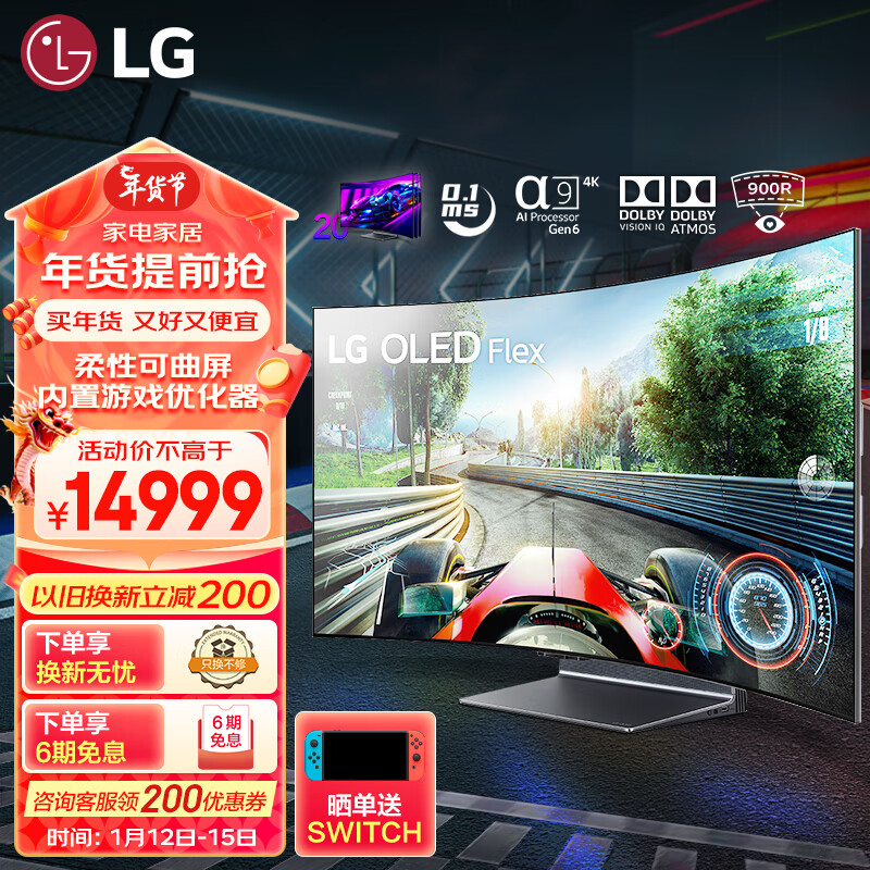 LG 42英寸 OLED柔性可曲显示屏 4K超清护眼0.1ms低延迟120Hz高刷旗舰电竞游戏电视适配PS5 42LX3QPCA价格:14999.00元!