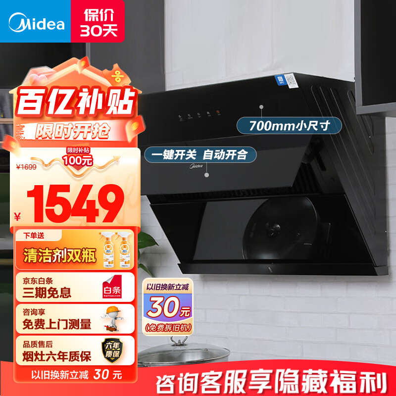 美的(Midea)抽油烟机家用小户型700小尺寸侧吸式抽烟机大吸力脱排油烟机抽烟机CXW-280-J27价格:1549.00元!