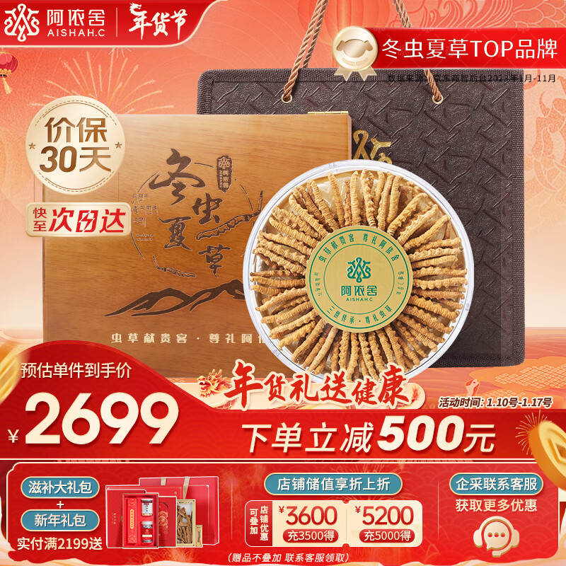 阿依舍 冬虫夏草【年货礼品】约4根/g 20克 新干虫草礼盒 冬虫草 送礼佳选 送父母长辈补品价格:3199.00元!
