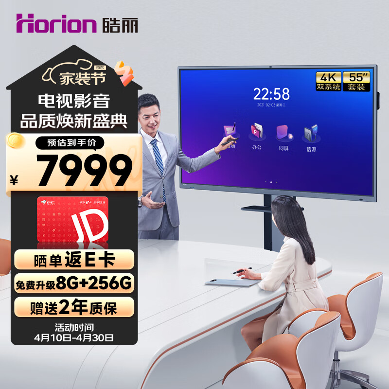 皓丽智能视频会议平板一体机55英寸会议电视11代i7Win11/8+256智慧触屏商用会议室大屏含碳钢移动支架价格:9549.00元!