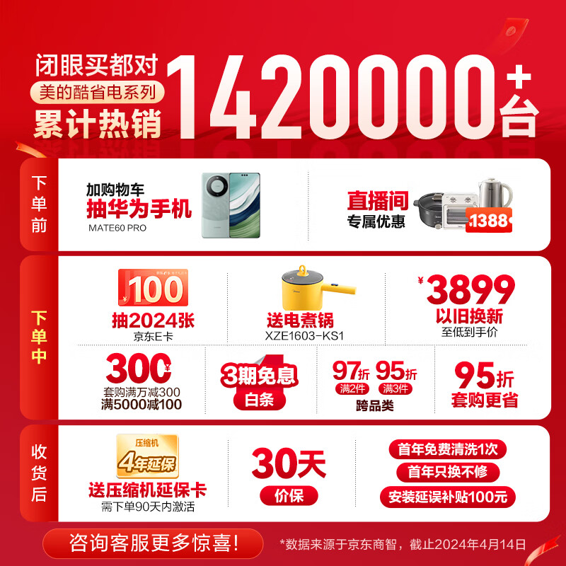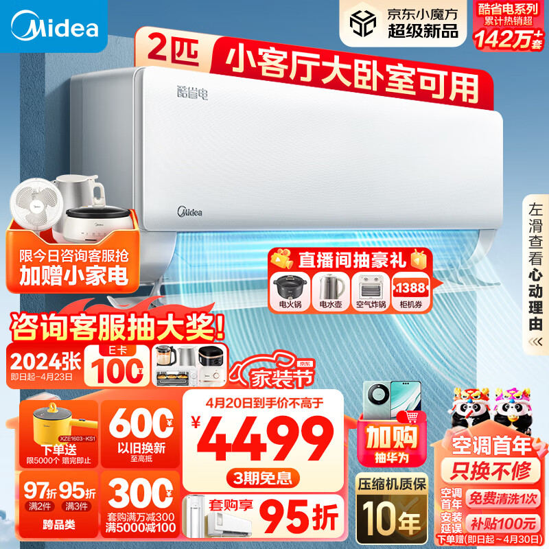 美的(Midea)空调 2匹 酷省电 新一级能效 变频冷暖 自清洁 壁挂式空调挂机除湿 智能家电 KFR-46GW/N8KS1-1价格:4499.00元!