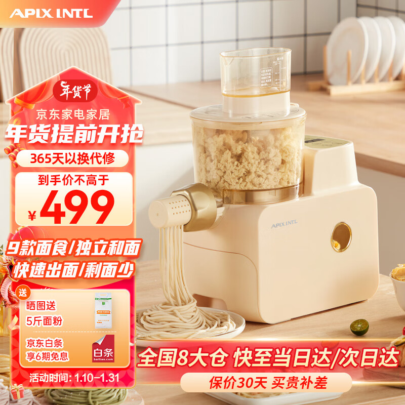 APIXINTL安本素面条机全自动压面机家用多功能多模具电动和面机揉面饺子皮机 可拆易清洗/一键出面/9款面食 鹅黄色(四人份量)价格:699.00元!