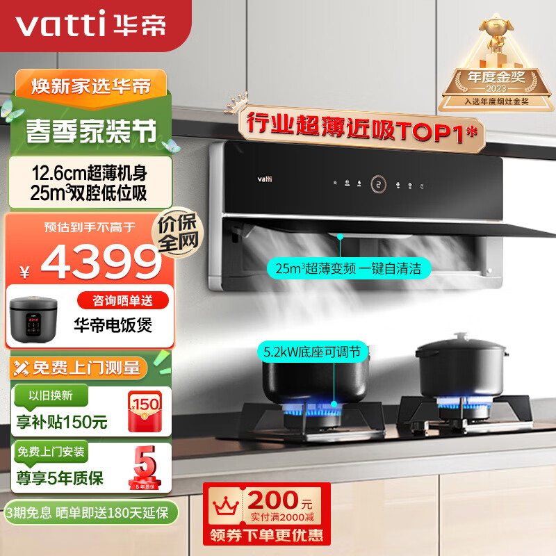 华帝(VATTI)【理想家】抽油烟机超薄近吸X6家用侧吸变频大吸力燃气灶具烟灶套装25风量自动清洗i11210天然气价格:4299.00元!