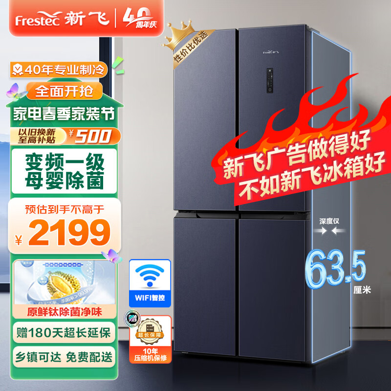 新飞(Frestec)母婴系列442升十字四门变频一级能效变温净味大容量家用除菌电冰箱 BCD-442WK8ET价格:2399.00元!