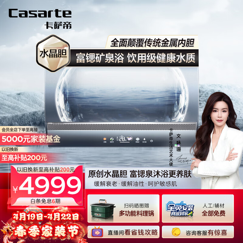 卡萨帝(Casarte)60升银河家用储水式电热水器原创水晶胆卫生间富锶汤泉变频速热一级能效CES60H-PROS3KCEK02U1价格:5262.00元!