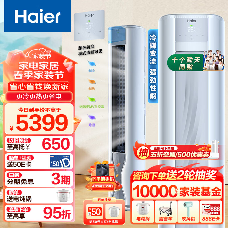 海尔(Haier)2匹 劲爽·荣耀 新一级能效 变频 快速冷暖 自清洁 家用客厅空调立式柜机 KFR-50LW/A1FAA81U1价格:5399.00元!