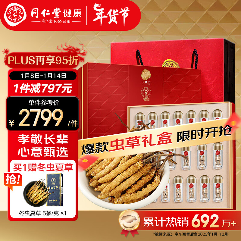 北京同仁堂 青源堂【年货礼盒送长辈】 冬虫夏草 4条/g 20克礼盒 虫草 无竹签无断草冻干干虫草送父母礼品价格:3594.00元!