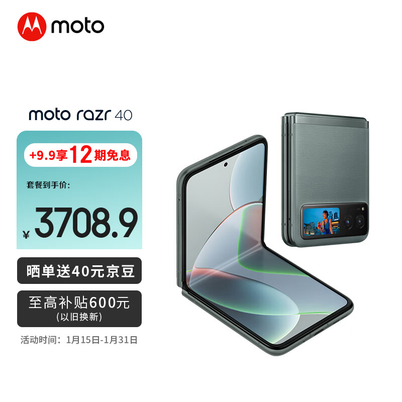 摩托罗拉(Motorola)【+9.9享12期免息版】摩托罗拉 moto razr 40 双卡双待双5G 折叠屏手机 12GB+256GB 天青灰价格:4008.90元!