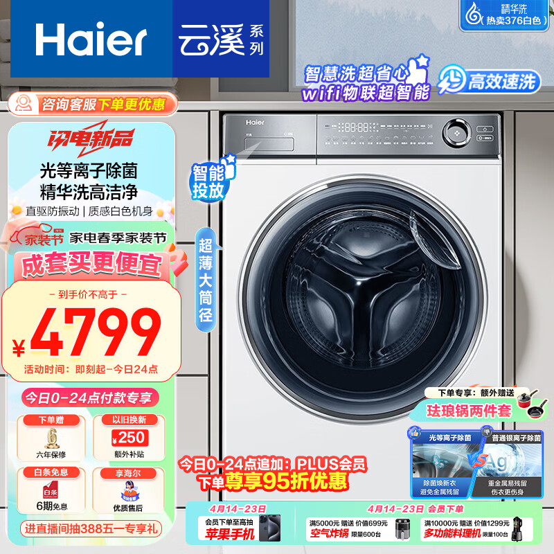 海尔(Haier)滚筒洗衣机全自动 云溪白376 10公斤大容量【直驱精华洗XQG100-BD14376LWU1】超薄家用 以旧换新价格:4769.00元!
