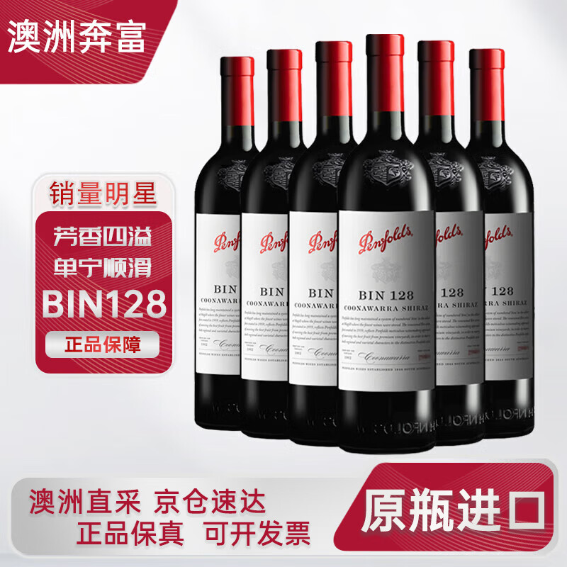 奔富(Penfolds)BIN128库纳瓦拉设拉子干红葡萄酒 750ml*6整箱装价格:1888.00元!